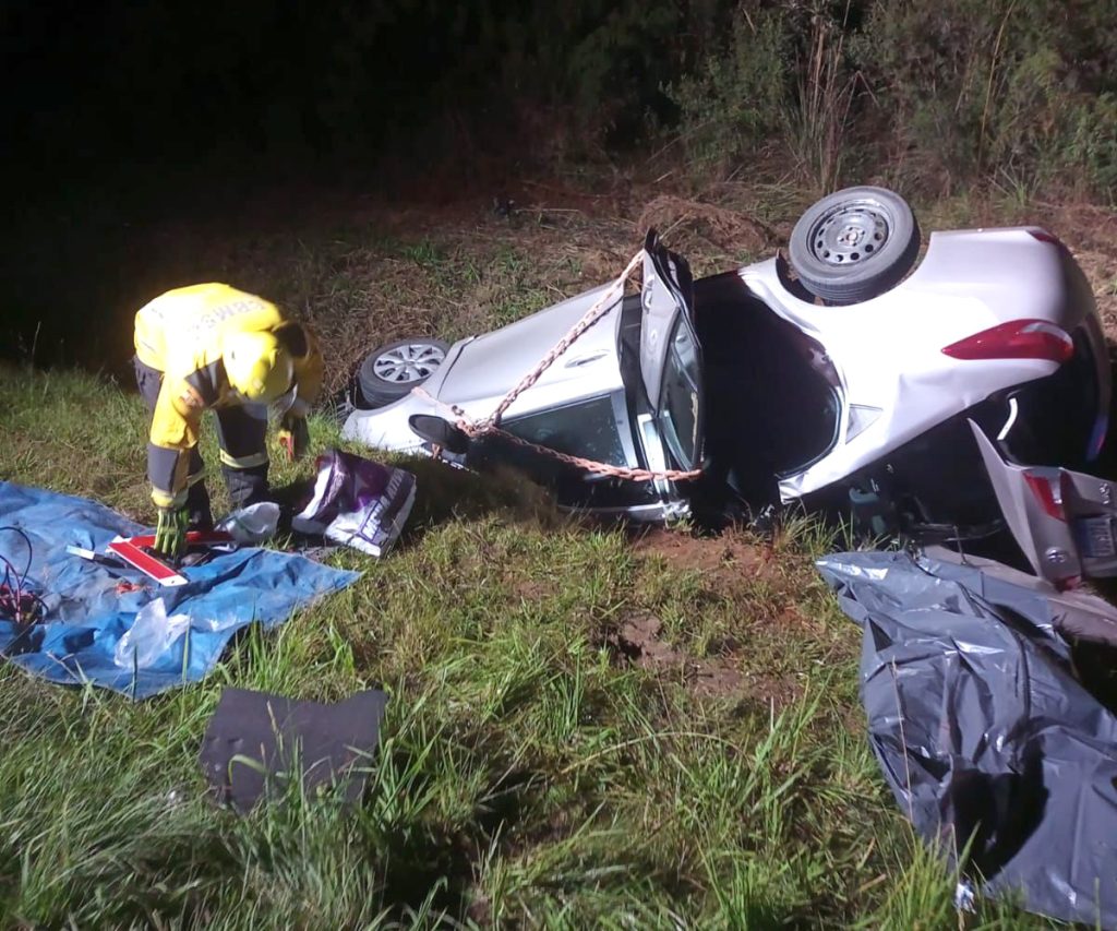 A vítima foi identificada como César Damásio, de 80 anos, motorista de um veículo Toyota. Ele não resistiu aos ferimentos e já foi encontrado sem sinais vitais pelas equipes de resgate.De acordo com o Corpo de Bombeiros, a ocorrência envolveu uma colisão frontal entre um carro de passeio e uma caminhonete, seguida de capotamento. Quatro pessoas estavam envolvidas no acidente.