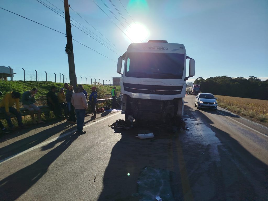 Segundo o Corpo de Bombeiros Militar de Santa Catarina, a ocorrência foi registrada por volta das 6h55. No local, as equipes constataram uma colisão frontal envolvendo um Fiat Uno Mille Fire Flex e um caminhão VW/28.460 Meteor 6×2.