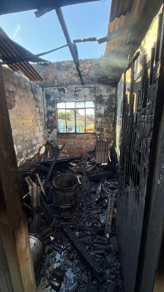 Ao chegarem ao local, os bombeiros confirmaram que se tratava de um incêndio em uma casa de alvenaria com cerca de 70 metros quadrados. As chamas já haviam consumido praticamente toda a edificação.
