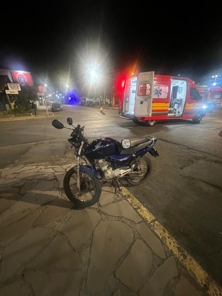 Na noite deste domingo (19), um acidente de trânsito envolvendo um carro e uma motocicleta foi registrado na Rua Ismael Nunes, nas proximidades da Praça Hercílio Luz, em São Joaquim, na Serra catarinense.