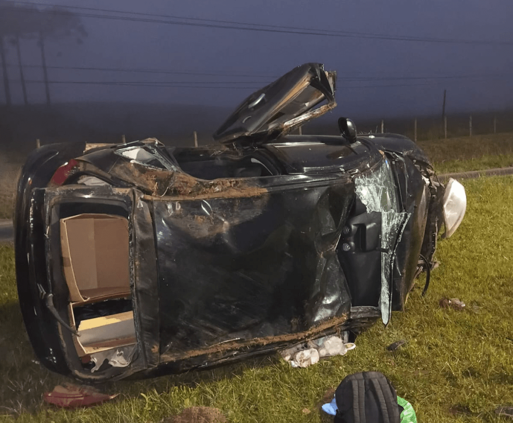 As viaturas AR-282 e ASU-486 atenderam à ocorrência. No local, foi constatada uma saída de pista seguida de capotamento envolvendo um veículo Citroën C3, que ficou totalmente destruído devido à força do impacto.