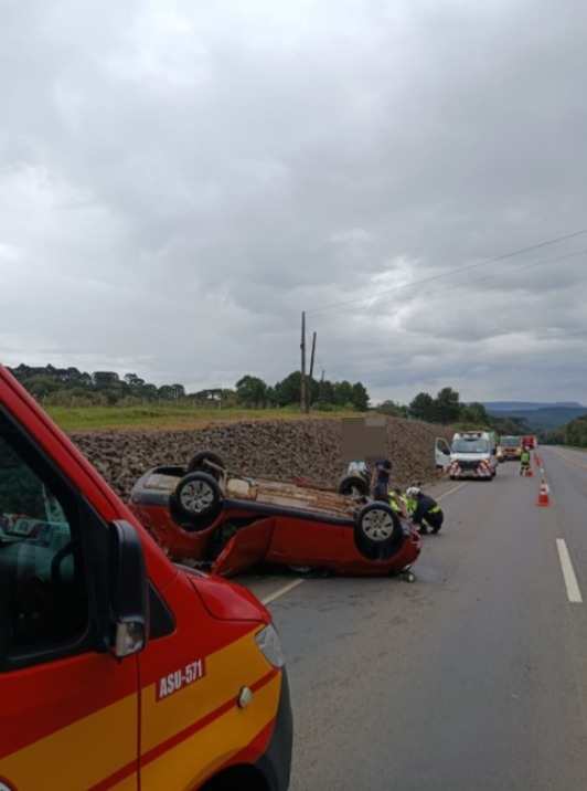 A ocorrência envolveu a saída de pista seguida de capotamento de um veículo Fiat Siena, de cor vermelha, com placas do município. Ao chegar ao local, as equipes constataram que a condutora, uma mulher de 57 anos e única ocupante do automóvel, já estava fora do veículo e recebia atendimento da equipe da concessionária Arteris Planalto Sul.