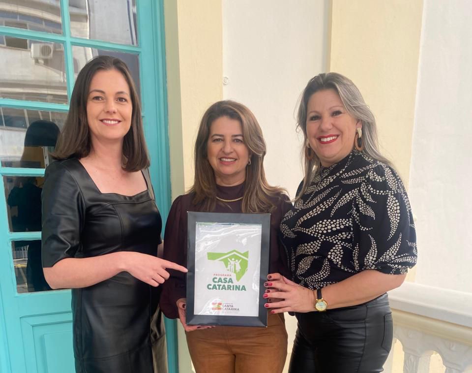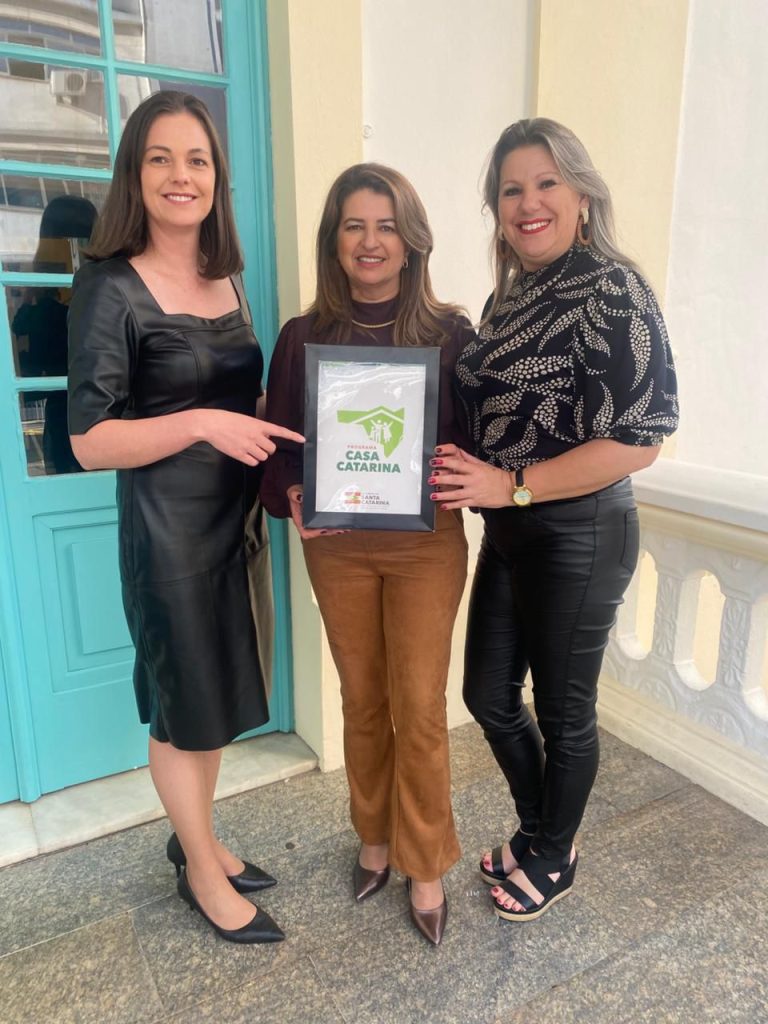 A prefeita de Capão Alto, Sadiana Melo, participou da cerimônia de assinatura de convênio, em Florianópolis, para a construção de moradias populares, destinadas a famílias capãoaltenses, por meio do Programa Casa Catarina, do Governo do Estado de Santa Catarina. A cerimônia de assinatura de adesão ao programa foi acompanhada pela secretária Municipal de Assistência Social, Silvia Ribeiro.