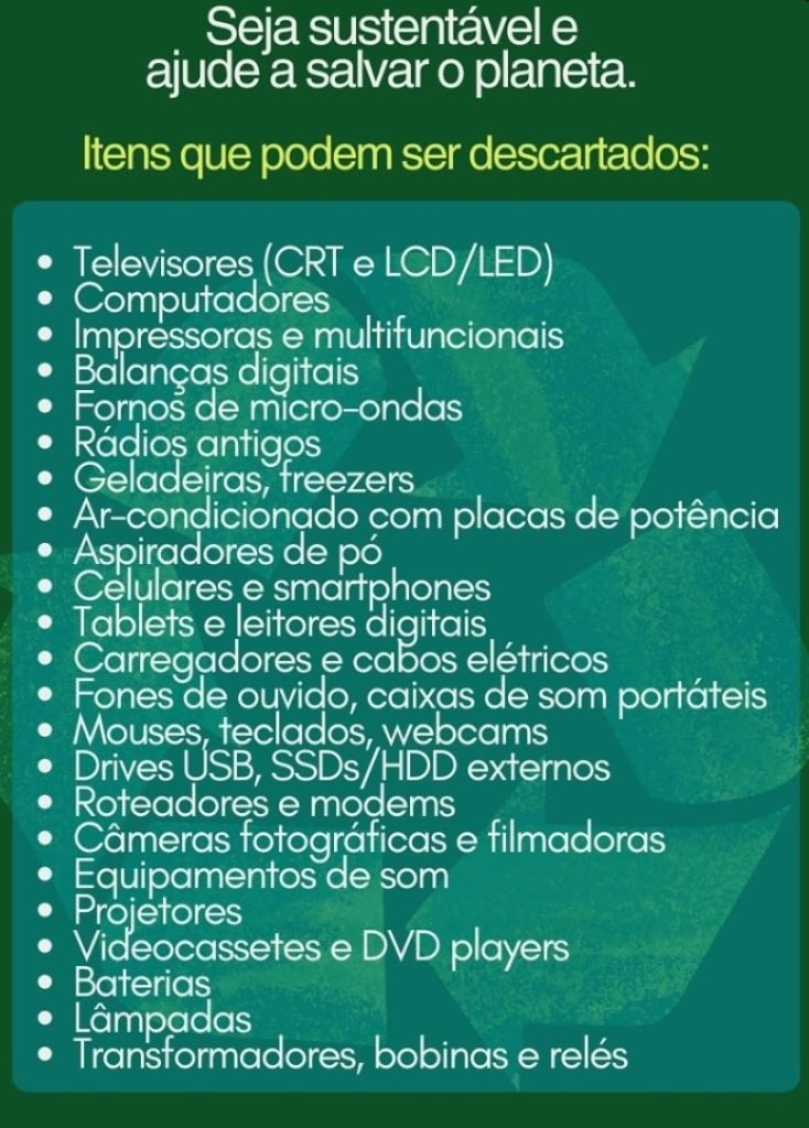 O ponto de coleta será a Escola Municipal Valmor Antunes dos Santos, onde a população poderá entregar pilhas, baterias e lixo eletrônico em geral.