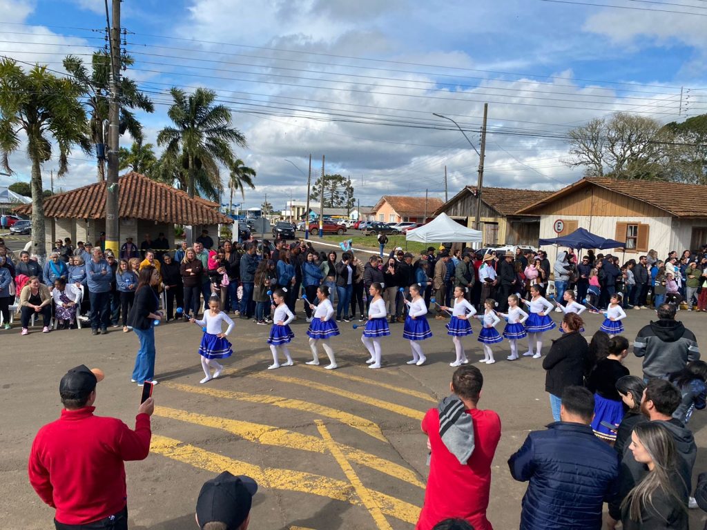 O ato cívico foi realizado na rua principal da cidade, a partir das 14 horas. Participaram as Escolas Municipais Valmor Antunes e Belisário José Luiz, integrantes do colégio estadual Emiliano Ramos, além de crianças do CEIm Dona Alice, grupos de Mães e Idosos e fanfarras.