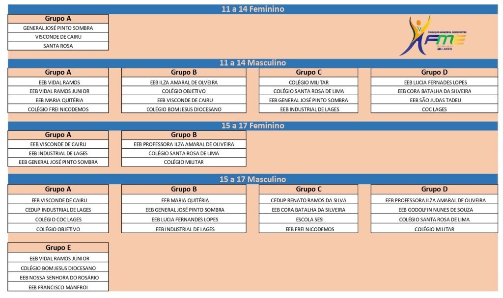 - Grupo C: Colégio Policial Militar Feliciano Nunes Pires, Colégio Santa Rosa de Lima, E.E.B. General José Pinto Sombra e E.E.B. Industrial de Lages