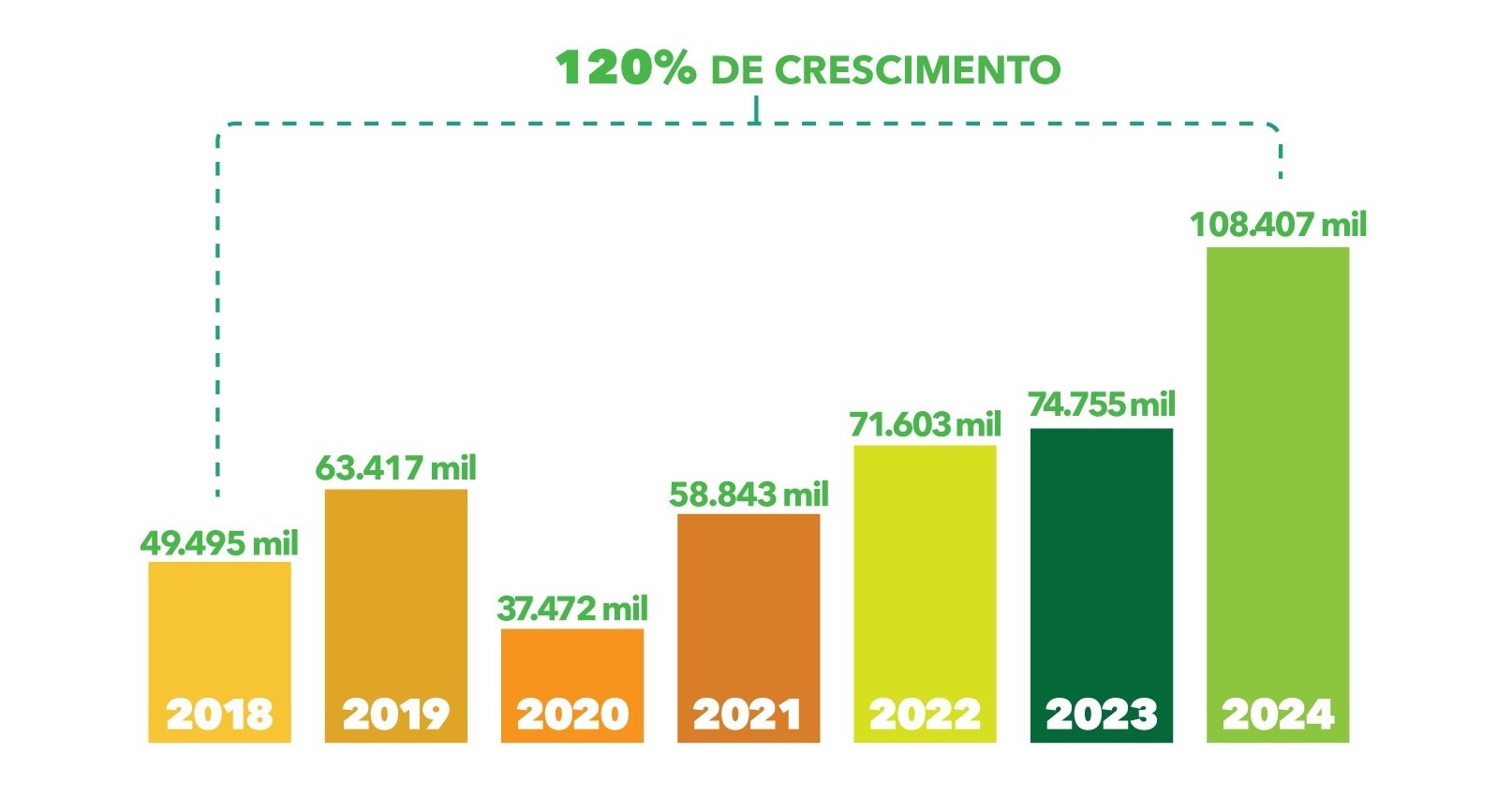 Em 2024 foram realizados 108.407 mil procedimentos oftalmológicos eletivos, um crescimento de 120% em relação a 2018 quando foram realizadas 49.495 mil cirurgias. Entre 2023 e 2024 o Estado realizou 183.162 mil cirurgias de visão.