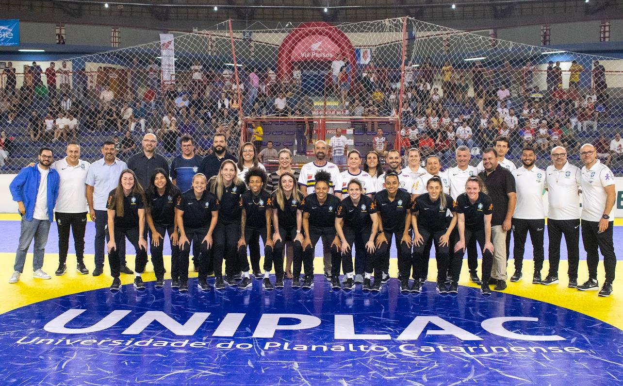 A cidade de Lages recebe, pela primeira vez sob a chancela da Confederação Brasileira de Futebol (CBF), a Seleção Brasileira de Futsal Feminino. A equipe desembarcou nesta segunda-feira (10) e permanecerá até o dia 20 de março, realizando treinamentos no Ginásio Jones Minosso antes de seguir para Sorocaba, onde disputará a Copa América entre os dias 22 e 30 deste mês. A estadia das atletas na cidade é fruto de uma parceria com a Universidade do Planalto Catarinense (Uniplac), que viabilizou a estrutura necessária para a preparação da equipe.