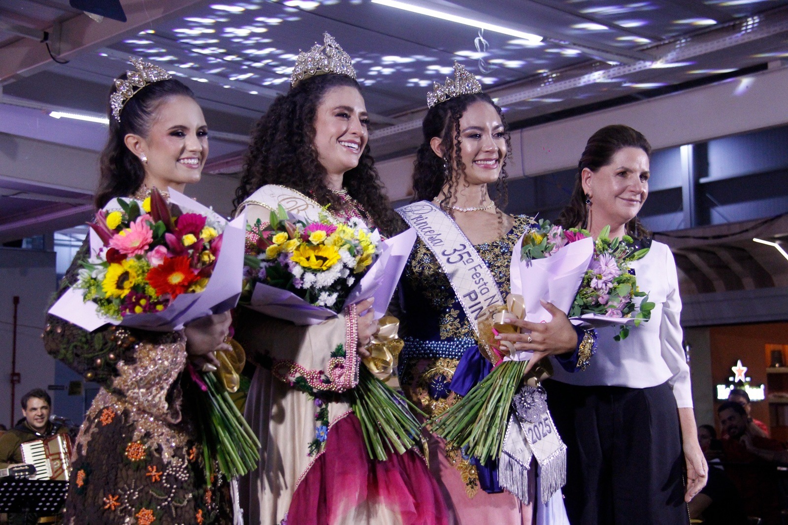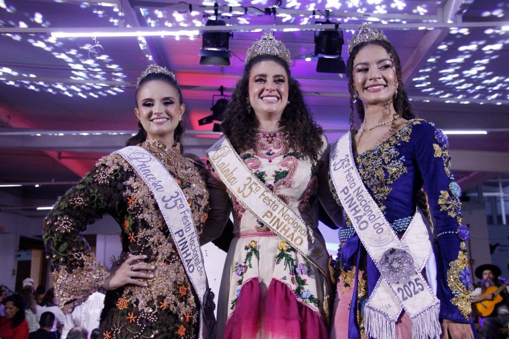 Depois de muita expectativa, semanas de preparação, ensaios e produções, a comunidade lageana conheceu o trio que compõem a realeza da 35ª Festa Nacional do Pinhão. Amanda Bianchini Moraes foi eleita rainha pelo corpo de jurados, seguida por Lariane Rodrigues a primeira princesa e Alice Cunha Ramos a segunda princesa. A solenidade de escolha aconteceu nesta quinta-feira (27) no Mercado Público Municipal Osvaldo Uncini. A Festa do Pinhão acontecerá de 13 a 22 de junho no Parque de Exposições Conta Dinheiro.