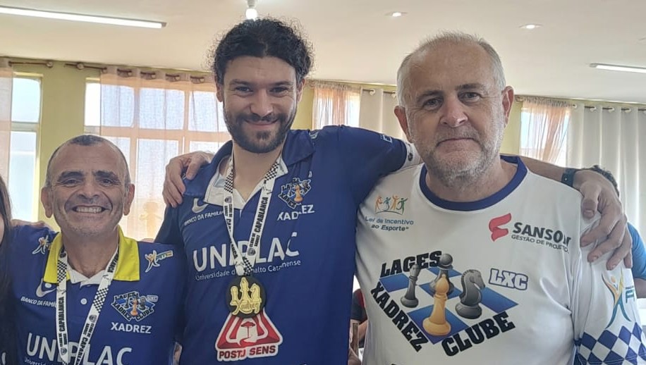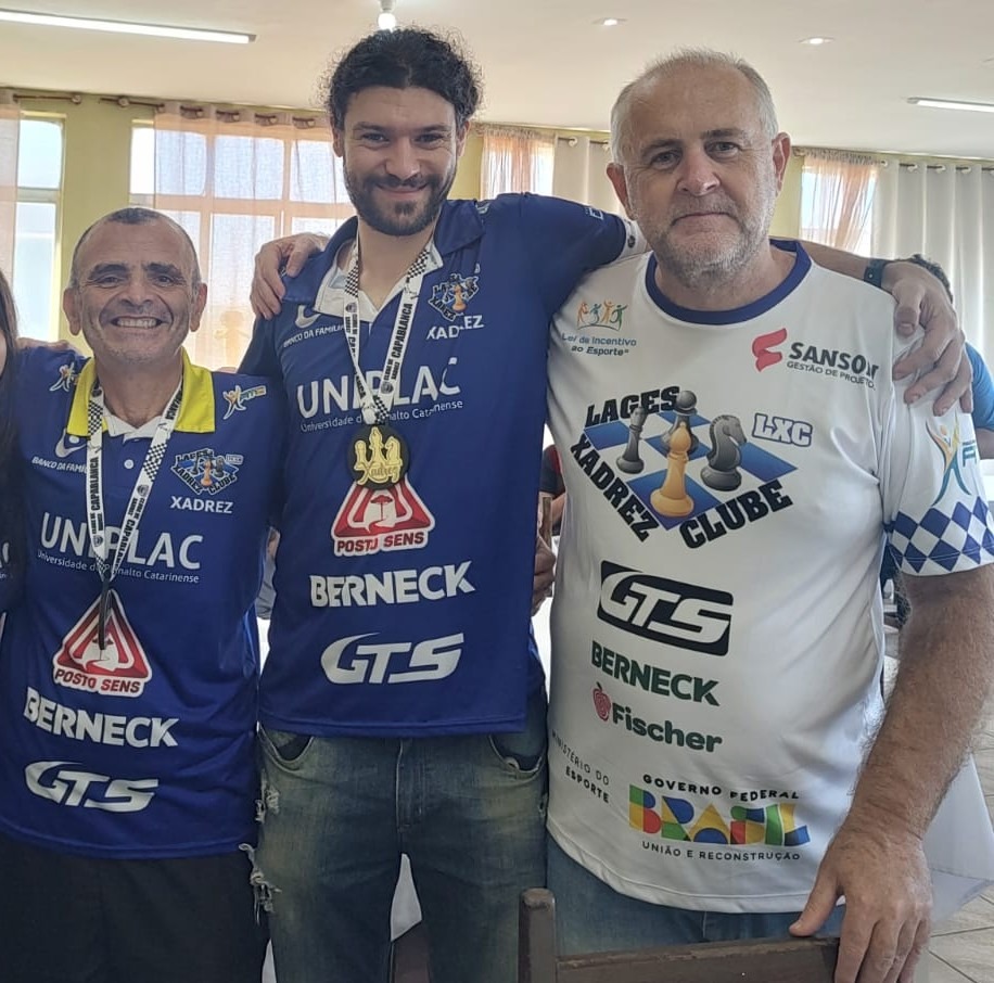 Os enxadristas Marco, Alfeu e Gabriel fazem parte do Programa Bolsa Atleta da FME-Lages e a equipe tem o patrocínio da BERNECK para as competições do ano.