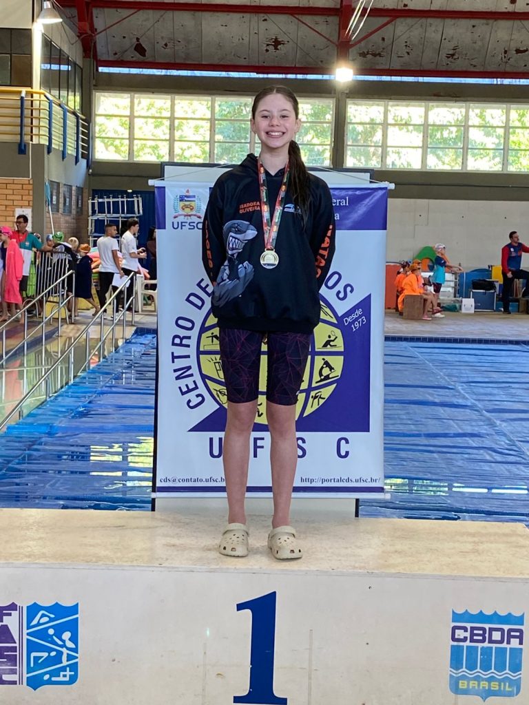 Isadora Vieira Oliveira conquistou três medalhas no Catarinense de Natação, levando Lages ao pódio. Agora chegou a vez dos Jesc