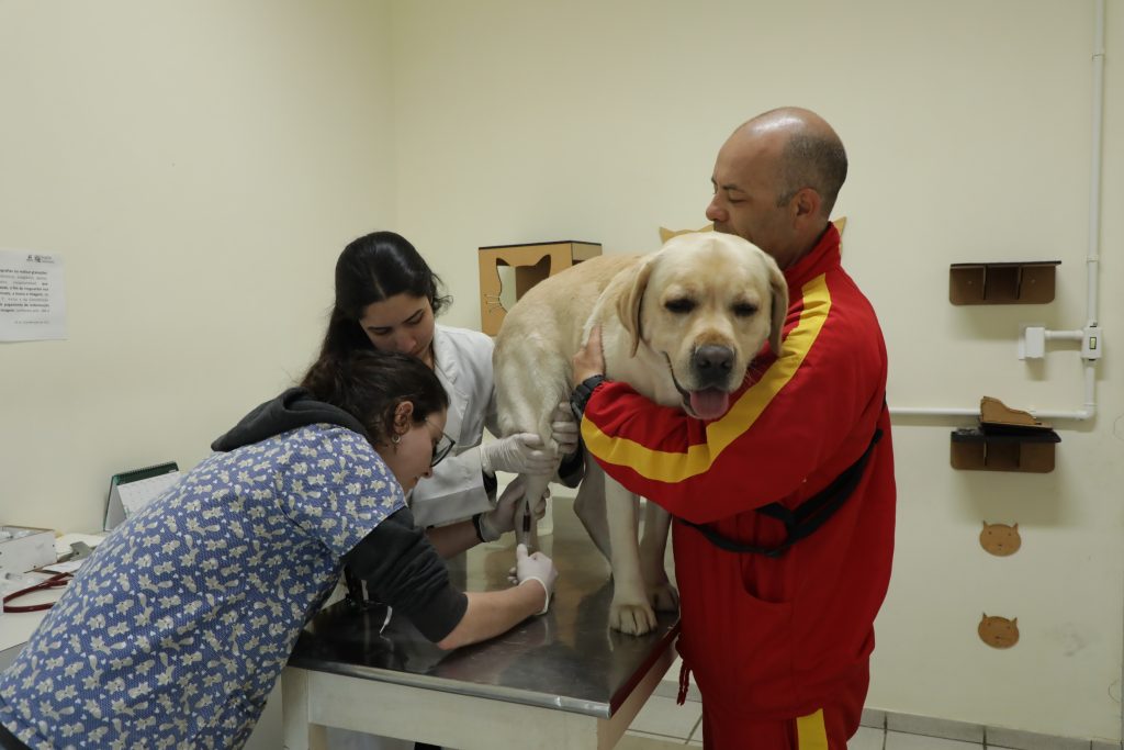 Seis cães de serviço do Corpo de Bombeiros Militar de Santa Catarina passaram por check-up de rotina no Hospital de Clínica Veterinária Professor Lauro Ribas Zimmer (HCV), localizado no campus do Centro de Ciências Agroveterinárias (CAV), nos dias nove e 16 de julho. Outros dois animais devem ser atendidos nos próximos dias. O atendimento anual que monitora a saúde de cada um deles e garante que estejam aptos para o trabalho é fruto de uma parceria entre o Corpo de Bombeiros do estado e a Universidade do Estado de Santa Catarina (Udesc), que iniciou oficialmente em 2017. O serviço seguiu em 2019, 2023 e este ano, conforme detalha uma das supervisoras dos atendimentos, a professora do Curso de Medicina Veterinária do CAV Letícia Yonezawa.