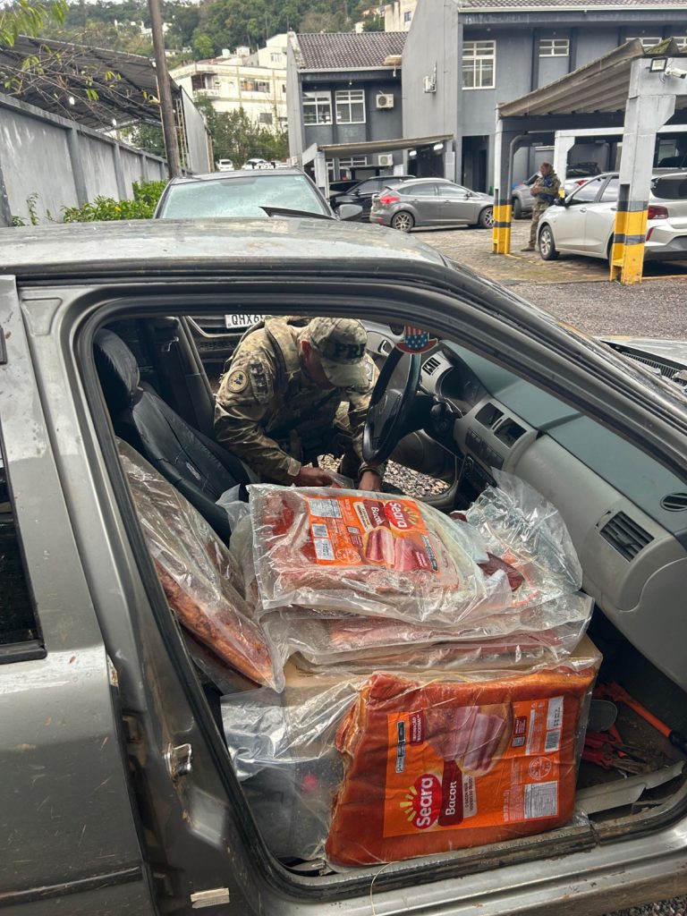 A perseguição terminou quando o condutor acessou uma estrada de terra, abandonou o carro, com placas de Chapecó, e fugiu a pé para uma mata fechada, não sendo mais encontrado. Dentro do veículo, os agentes encontraram 280 quilos de carne suína, além de um alicate de corte, provavelmente utilizado para arrombar o cadeado do caminhão.