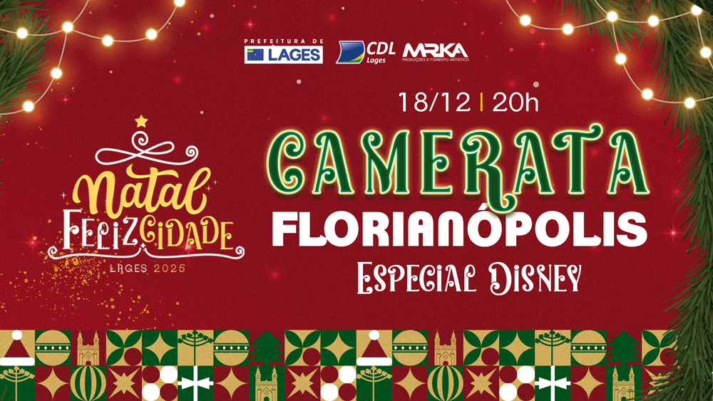 A magia do universo Disney promete encantar o público em meio às luzes do Túnel Encantado e à decoração natalina que transforma o Centro da cidade em um cenário especial para moradores, turistas e visitantes. Criado em 2019, o espetáculo chega pela primeira vez a Lages em um concerto gratuito, reunindo orquestra, canto, narração e personagens que marcaram gerações.