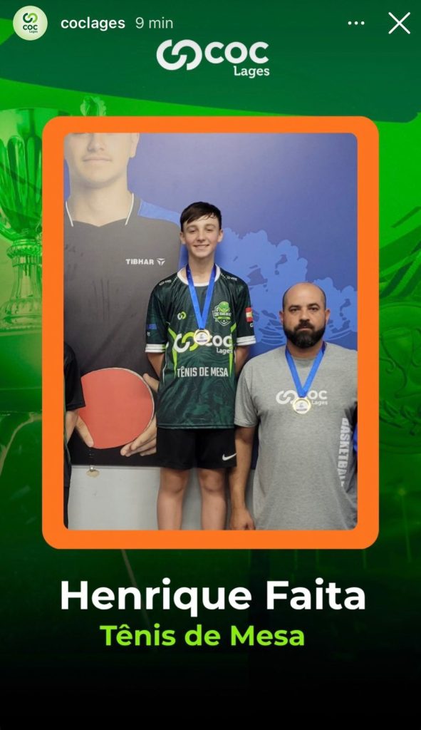 Representando o Colégio COC Lages, Henrique teve um desempenho consistente e demonstrou muita concentração ao longo das partidas, confirmando sua evolução e destaque no cenário do tênis de mesa escolar. A vitória no JESC municipal representa não apenas um título, mas também o reconhecimento de todo o esforço investido nos treinos e competições.