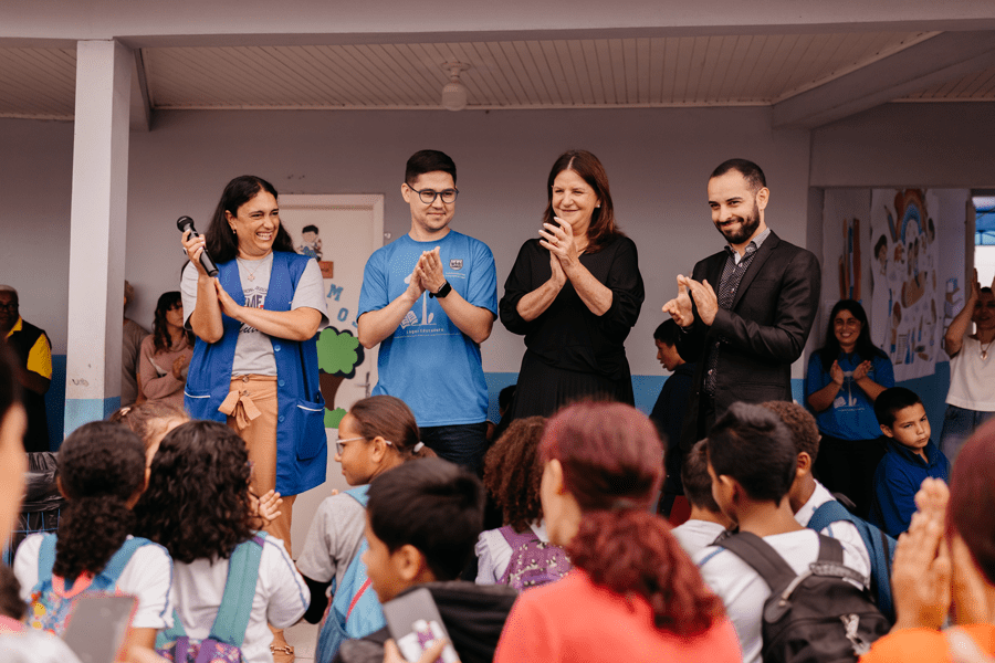 Os alunos da Escola Municipal de Educação Básica (Emeb) Mutirão, do bairro Habitação, foram recepcionados pela prefeita Carmen Zanotto e pelo vice-prefeito, Jair Junior na manhã desta quinta-feira (6), em ato simbólico para o início do ano letivo de 2025. Cerca de 15 mil alunos, 2.000 professores e 500 estagiárias auxiliares retornaram ao convívio em sala de aula.