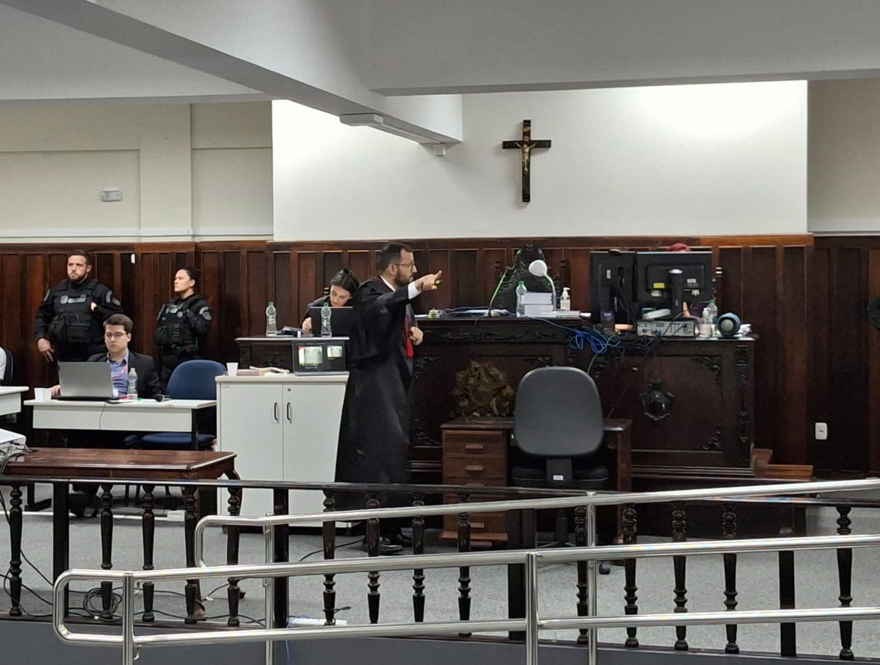 A sessão aconteceu no Fórum de Lages e foi aberta ao público. Os Promotores de Justiça Felipe Luz e Bruna Amanda Ascher Razera conduziram a acusação, apresentando as evidências do crime.