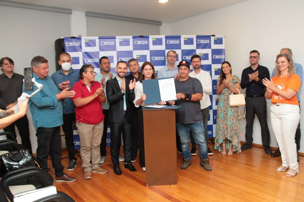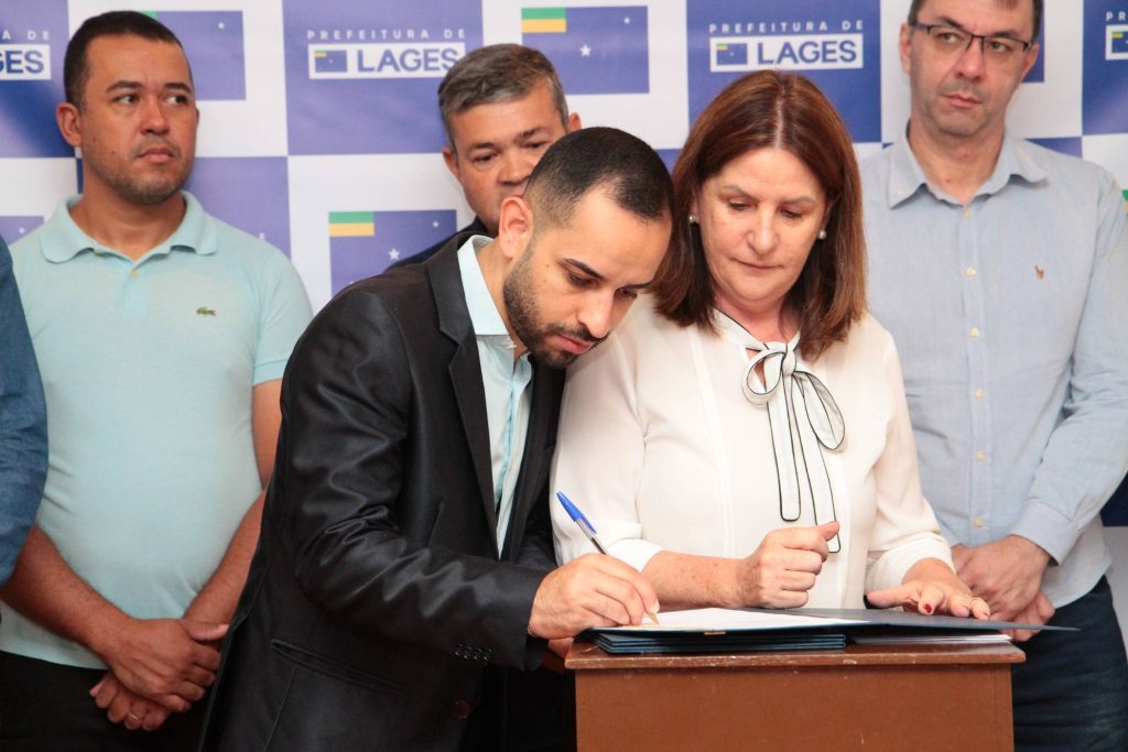 Documentos foram assinados pela prefeita Carmen Zanotto; vice-prefeito, Jair Júnior; secretário de Obras, Cleber Machado Arruda; secretários municipais; vereadores; representantes de empreiteiras, e comunidades contempladas