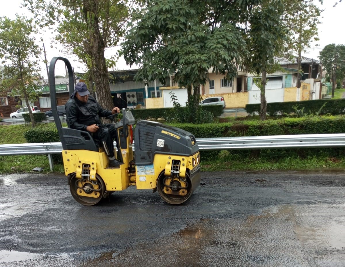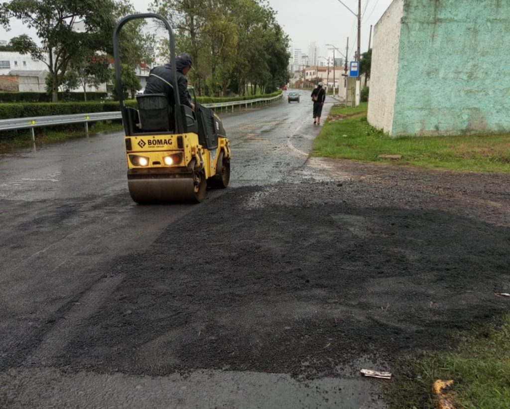 Trabalho emergencial continua avançando por toda a cidade. Equipes da Secretaria de Obras se dividem para atender diversas regiões. E serviço é realizado em duas modalidades, com asfalto frio ensacado e com massa asfáltica quente