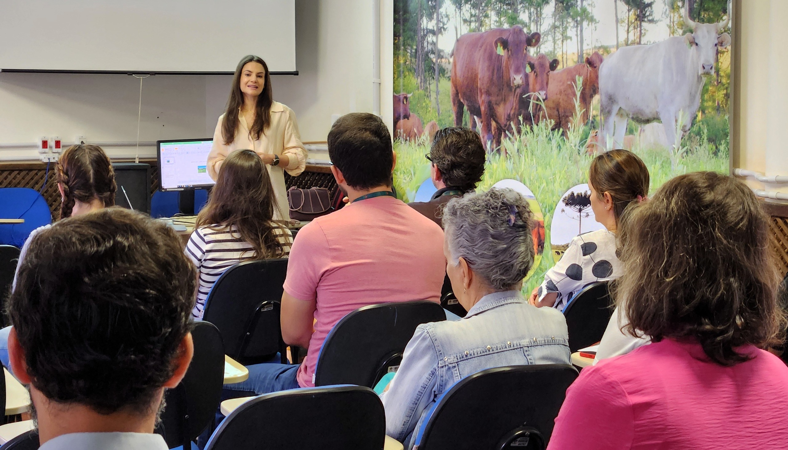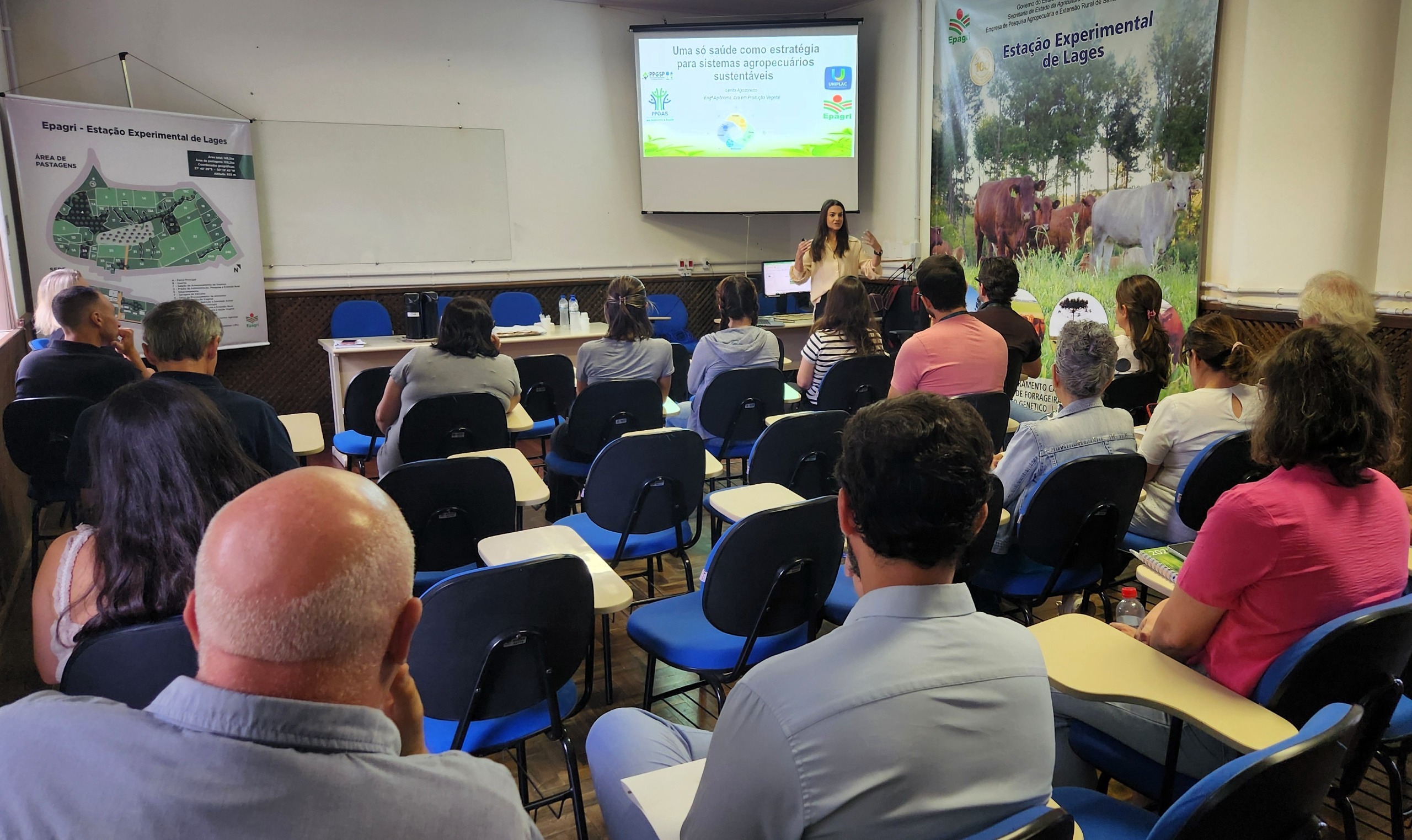 Lenita ministrou uma rápida palestra com o tema “Uma só saúde como estratégia para sistemas agropecuários sustentáveis”. Bastante crescente nos últimos anos, este conceito trabalha a indissociabilidade entre saúde humana, animal, vegetal e ambiental.