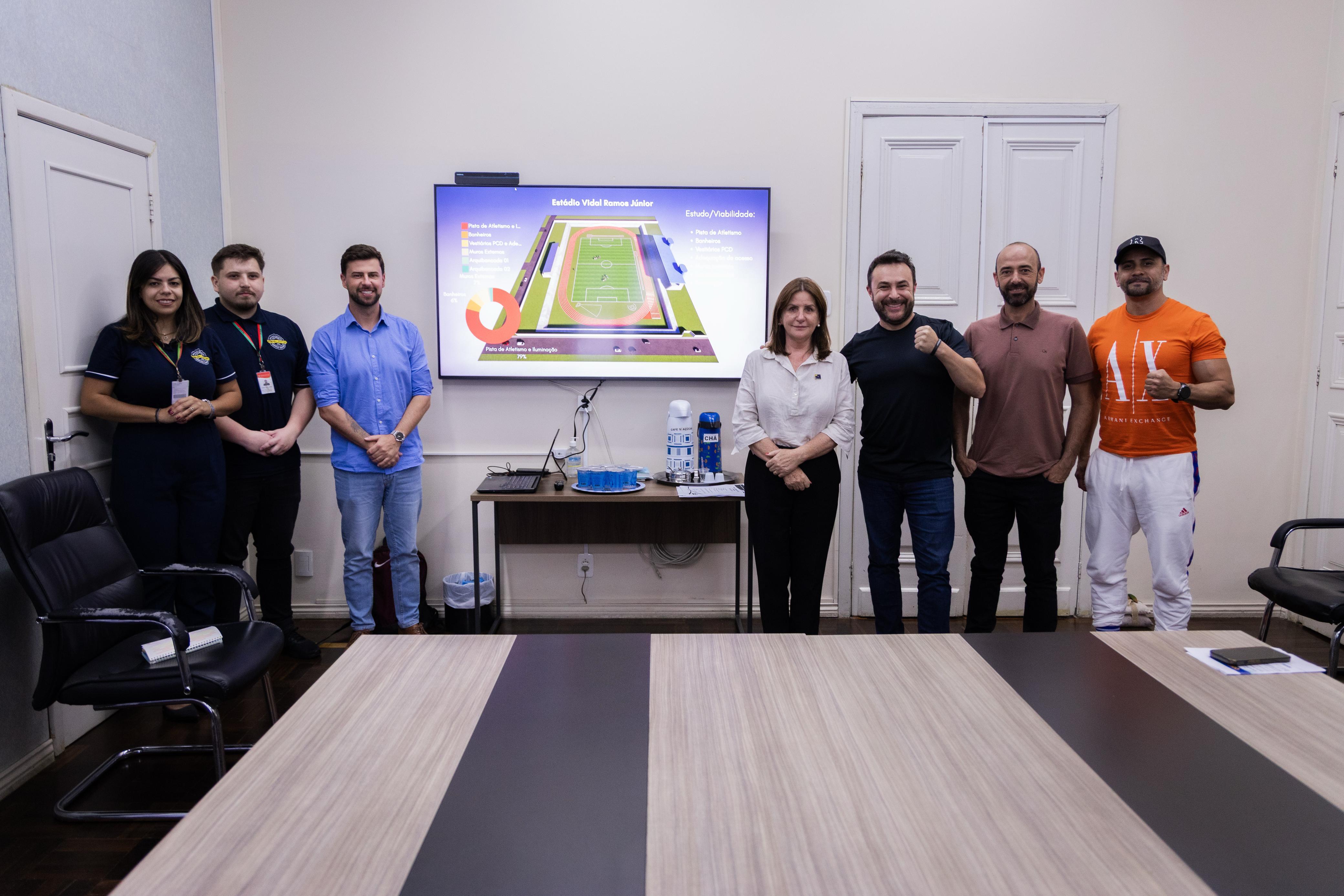 O projeto da nova pista de atletismo do Estádio Vidal Ramos Júnior, em Lages, deu mais um passo importante. O deputado estadual Marcius Machado (PL) apresentou o layout da estrutura à prefeita Carmen Zanotto (Cidadania), acompanhado do superintendente da Fundação Municipal de Esportes, Tyrone Machado, do diretor de Esportes, Rodrigo Rodrigues, do vereador Castor (PL) e da equipe de engenharia e arquitetura responsável pelo desenvolvimento do projeto.