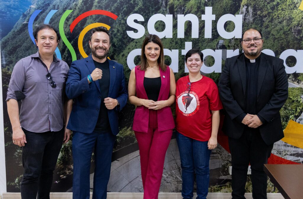 O deputado Marcius Machado (PL), juntamente com o pároco da igreja Nossa Senhora do Navio, Padre Álvaro, o coordenador do Movimento do Tabor, Hélio Furlan e a social media do Movimento, Gendili Fernanda reuniram-se com a secretária de Estado do Turismo, Catiane Seif, para apresentar demandas sobre o turismo religioso em Lages.