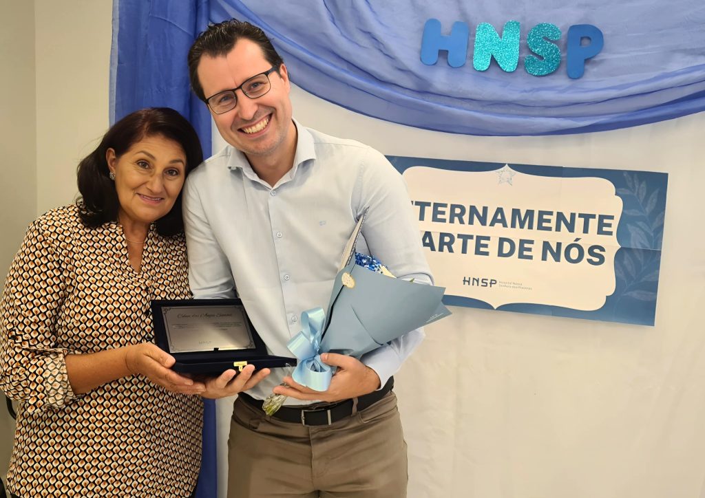 Celeci dos Anjos Simões, que dedicou 45 anos ao HNSP e foi a colaboradora homenageada com mais tempo de serviço, também compartilhou sua história. “Trabalhei em vários setores, fiz amizades que levarei para a vida. Passei minha vida aqui dentro, entrei menina e saio uma mulher realizada, casada, com filhos e netos. Hoje, minha neta Isabelle trabalha aqui no hospital e entrou na mesma idade que eu. A história está se repetindo”, disse, emocionada.