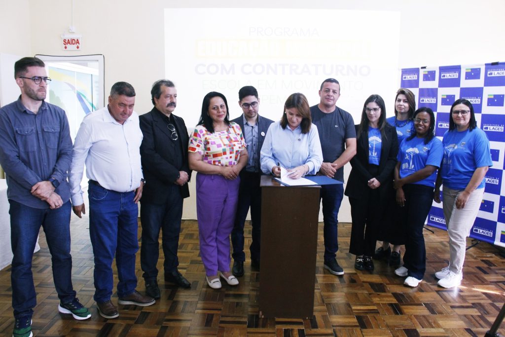 A Secretaria Municipal da Educação de Lages (SMEL) realizou, na manhã desta quinta-feira (3 de abril), o lançamento do Edital n.º 002/2025 para contratação de professores do Programa Educação Municipal com Contraturno – Escola em Movimento (Pemuc), no auditório da secretaria. O ato contou com a presença da prefeita Carmen Zanotto.