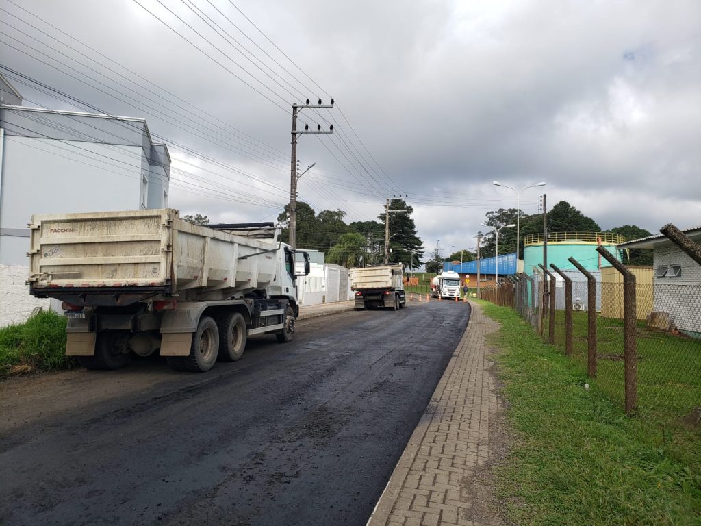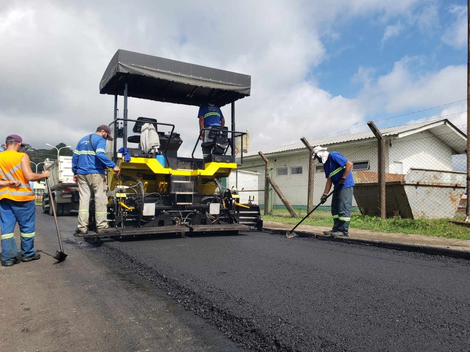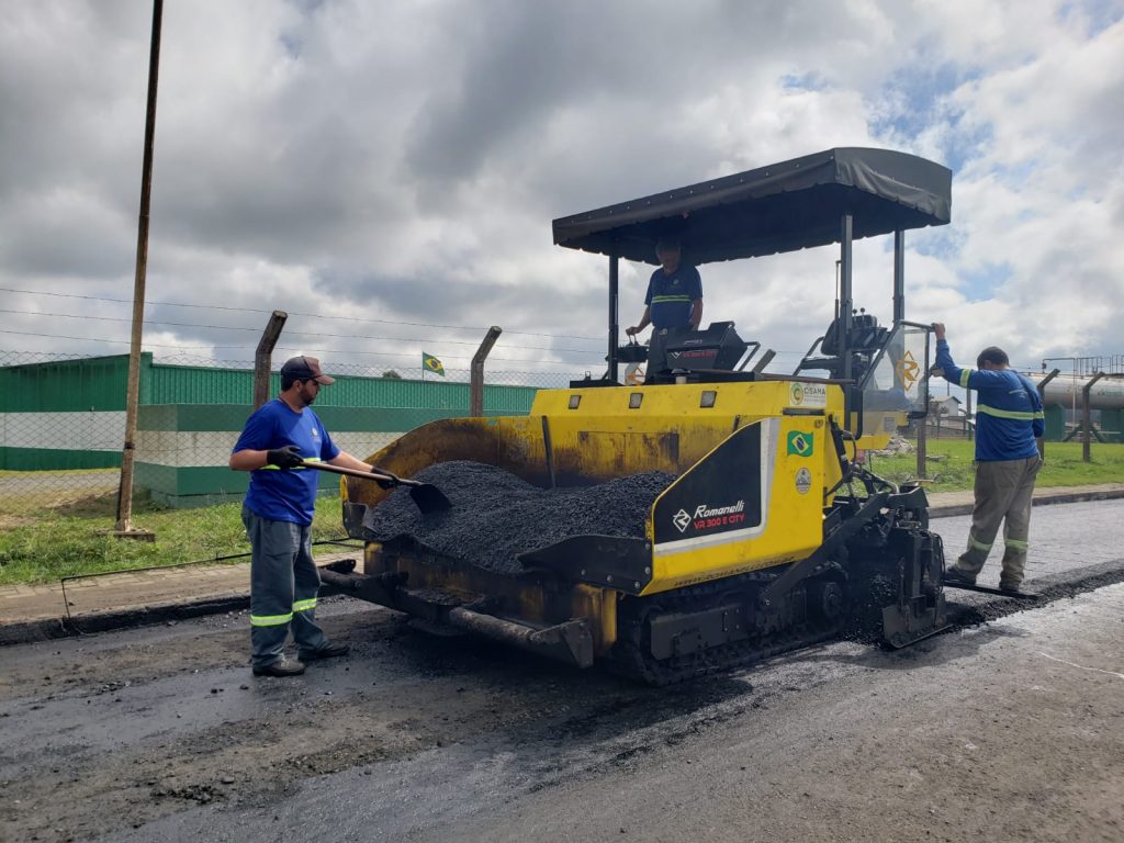 Serviço vem sendo executado com R$ 600 mil em recursos próprios do caixa municipal e com equipamentos e equipes da prefeitura. Camada asfáltica será reforçada para atender o tráfego pesado de veículos e indústrias locais