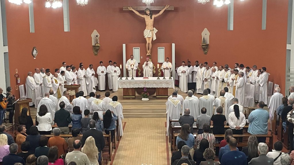 Painel, 16 de abril de 2025 — A Paróquia São Sebastião, em Painel, acolheu na noite de ontem (quarta-feira da Semana Santa), às 19h, a solene Missa do Crisma e da Renovação das Promessas Sacerdotais. Presidida por Dom Guilherme Antonio Werlang, bispo diocesano de Lages, a celebração reuniu grande parte dos presbíteros da Diocese, além de fiéis da comunidade local e de diversas paróquias da região.