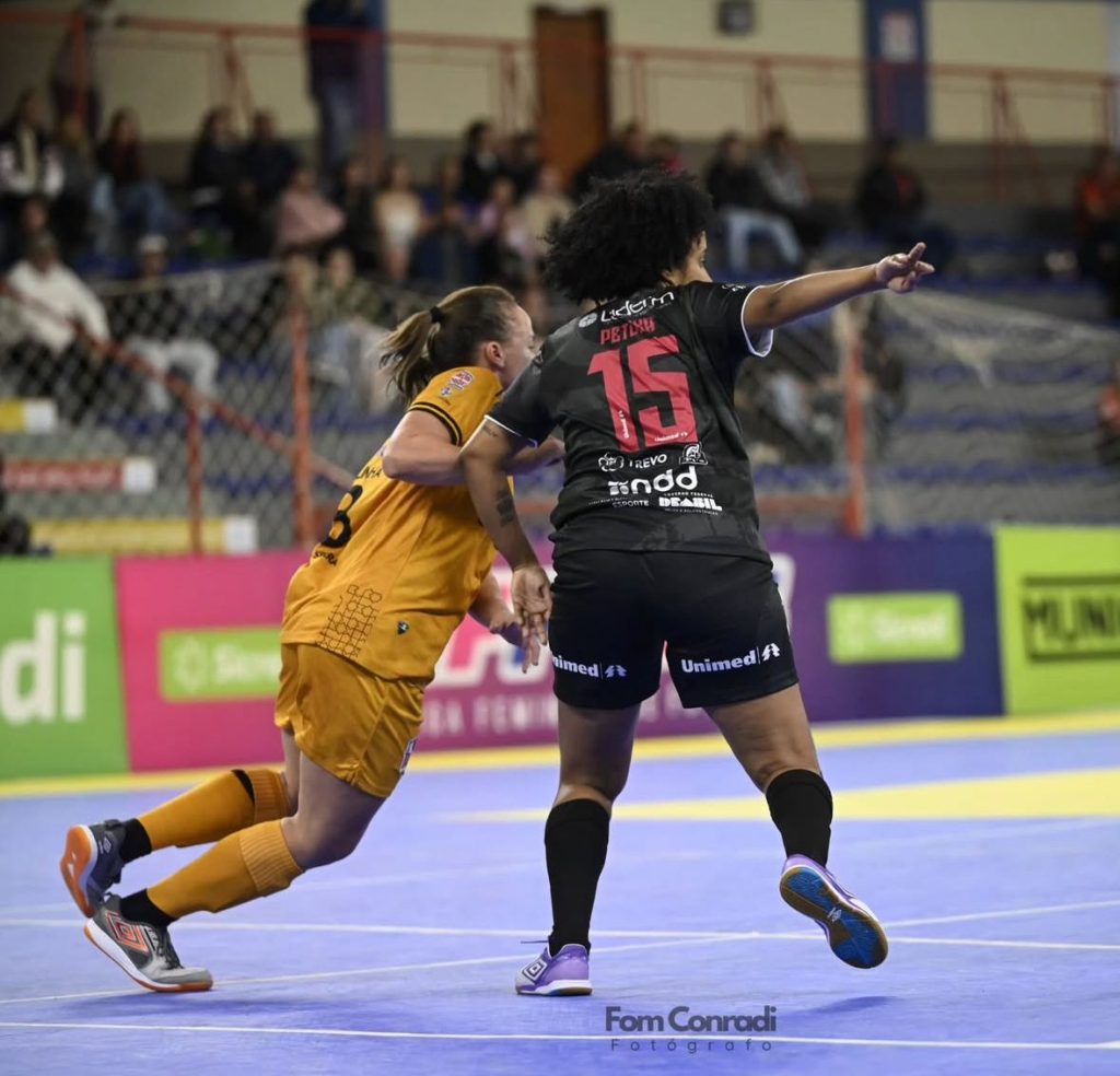 Com dois gols de Petuxa, equipe lageana vence em casa e assume a liderança da maior competição de futsal feminino do país