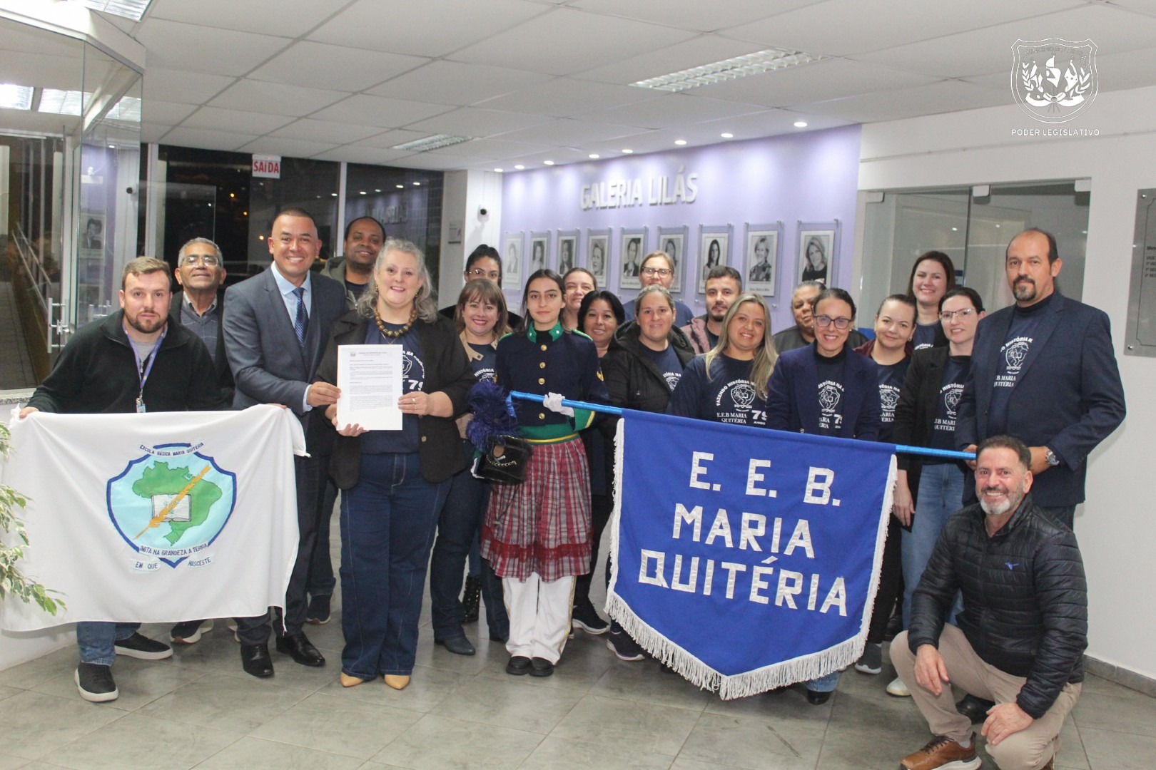 “Pelos esforços incansáveis em oferecer educação de qualidade e acolhimento a estudantes de diversas realidades sociais e culturais, pela construção diária de valores de cidadania e respeito, pela capacidade de transformar limitações físicas em lições de superação e por acreditar no potencial de cada aluno, rendemos nossos mais sinceros aplausos à E.E.B Maria Quitéria, exemplo vivo de que a educação transformadora se faz com compromisso, amor e perseverança. Que sua trajetória continue inspirando toda a comunidade e que seu brilho possa, cada vez mais, receber o reconhecimento e apoio que merece”, reverencia a moção.