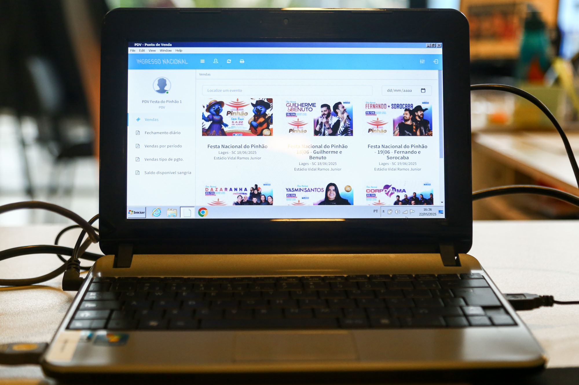 A Secretaria de Turismo instalou, nesta quinta-feira (22 de maio), um equipamento de atendimento ao público para emissão de ingressos físicos da 35ª Festa Nacional do Pinhão. A estrutura está localizada no centro da cidade, na Praça João Costa – Calçadão, e foi antecipada com o objetivo de facilitar o acesso àqueles que não possuem conexão com a Internet ou dispositivos digitais.