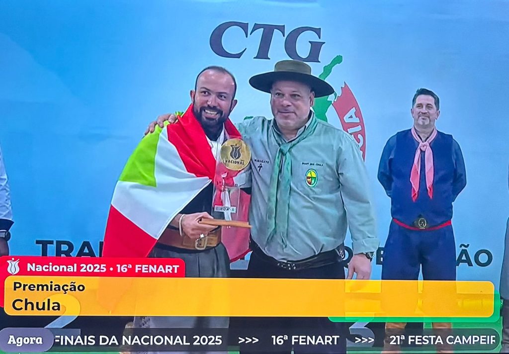 Representando o CTG Planalto Lageano, Rafael garantiu o 1º lugar na categoria Chula Vaqueano, disputando o troféu com competidores de diversos estados do país. Com 29 anos de trajetória dentro do tradicionalismo, ele participa do CTG desde a infância, quando ingressou na categoria mirim.