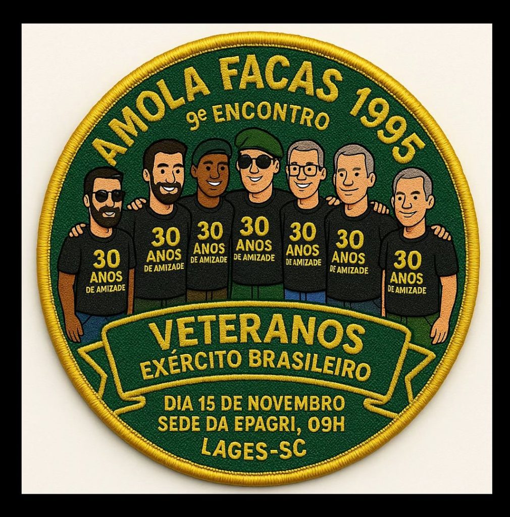 Os Veteranos de 1995 do 1º BFv Lages SC (SC) se preparam para celebrar três décadas de companheirismo e história no 9º Encontro do Grupamento Amola Facas, marcado para 15 de novembro de 2025, a partir das 9h, na sede da EPAGRI, bairro São Pedro/Morro do Posto.