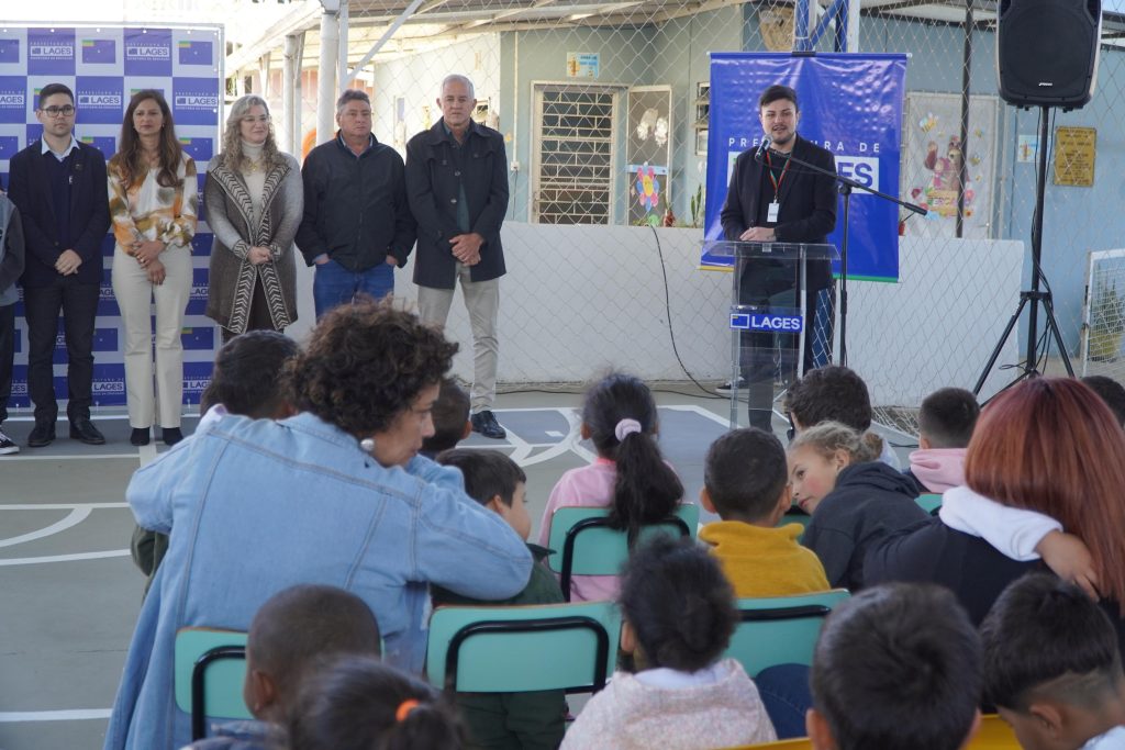 Foi entregue na manhã desta quinta-feira (11) à comunidade escolar da EMEB Saul de Athayde, em Lages, a quadra esportiva revitalizada e agora com cobertura. A obra foi realizada com recursos de emenda parlamentar da deputada estadual Luciane Carminatti, em parceria com a Prefeitura de Lages, por meio da Secretaria Municipal da Educação.