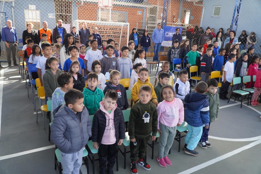 O ato de inauguração contou com a presença da prefeita Carmen Zanotto, do secretário municipal de Educação, professor Dr. Cristian Roberto Antunes de Oliveira, gestores, professores, estudantes e famílias da comunidade escolar.