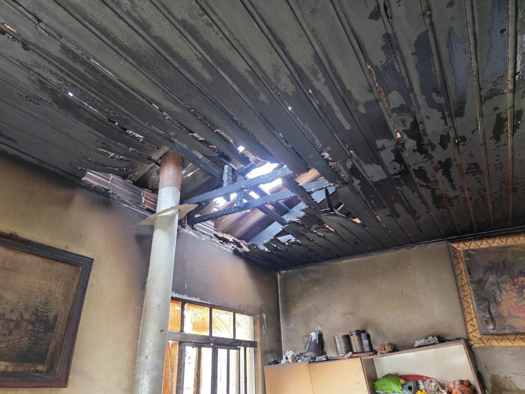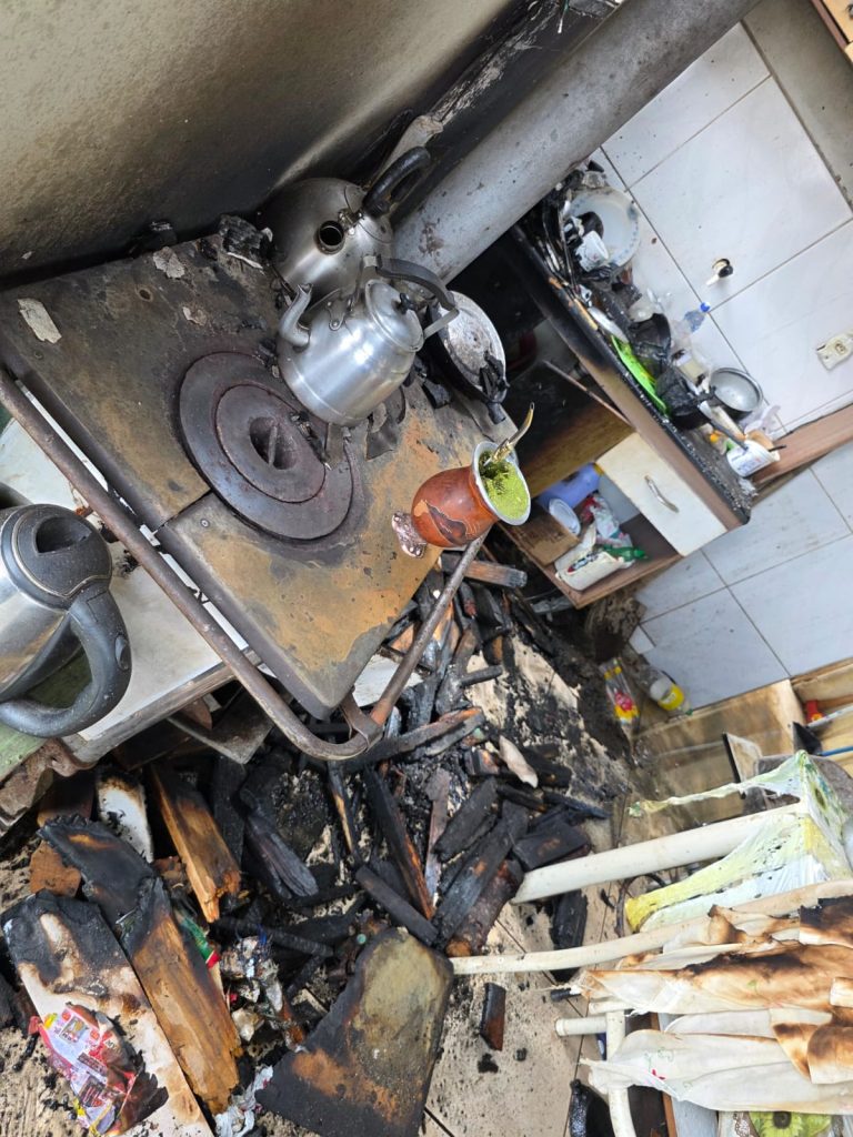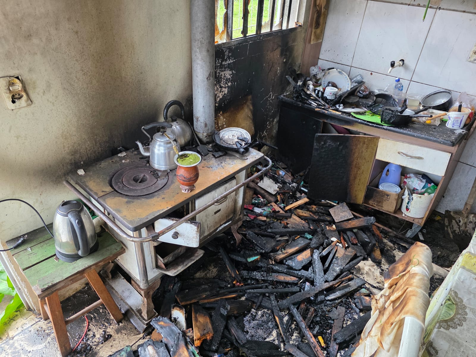 Apesar do esforço, o forro foi destruído, assim como parte das telhas de Eternit e móveis da cozinha, incluindo pia, mesa, fogão a lenha e fogão a gás.