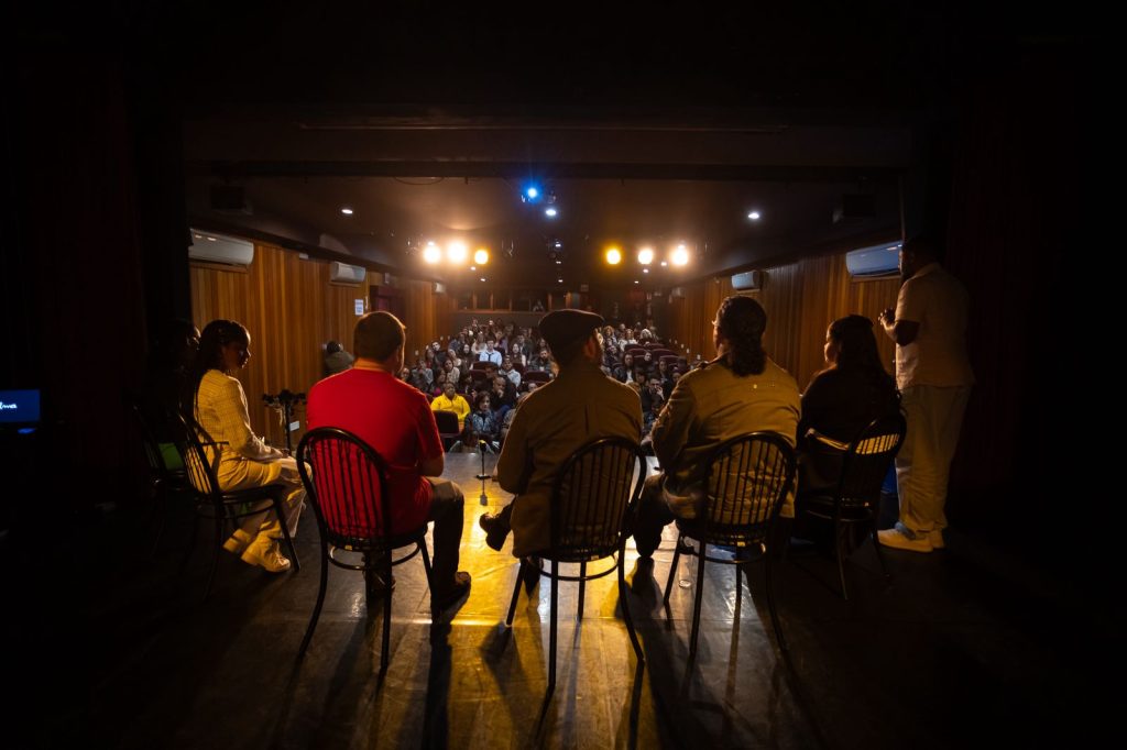 Durante a exibição, o público pôde assistir não apenas à obra, mas também participar de uma conversa com os profissionais envolvidos, que compartilharam os bastidores do processo criativo, curiosidades e desafios da produção.