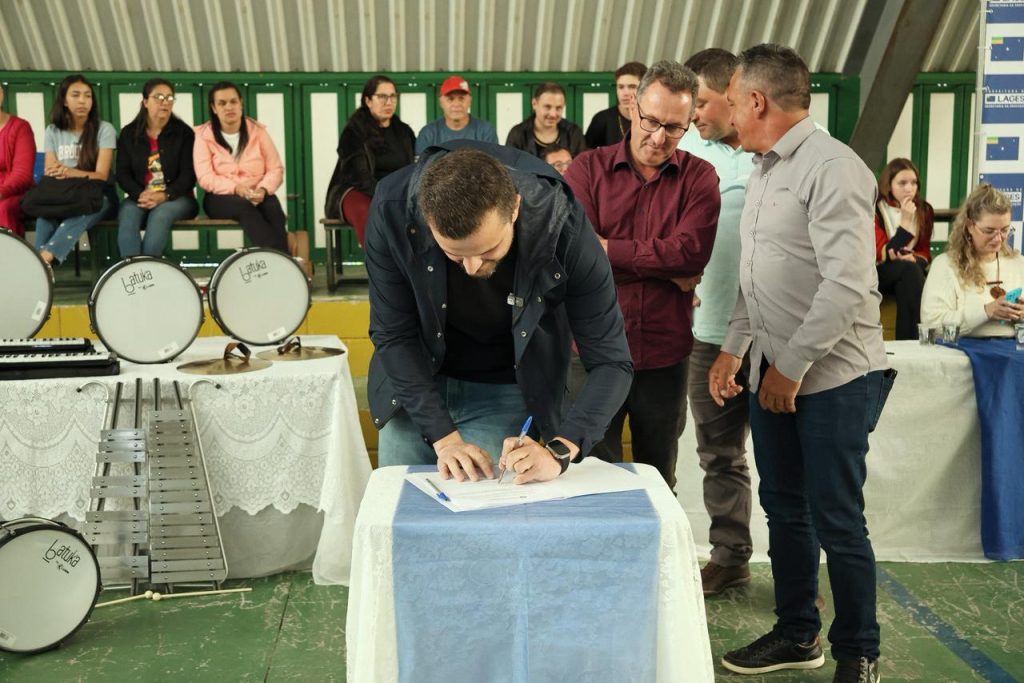 As escolas da Serra Catarinense ganharam reforço neste fim de semana. O deputado estadual Lucas Neves (Podemos) entregou conjuntos de instrumentos musicais para formar novas fanfarras escolares em dez municípios da região. O evento realizado em Lages reuniu centenas de pessoas, entre prefeitos, secretários municipais e vereadores.