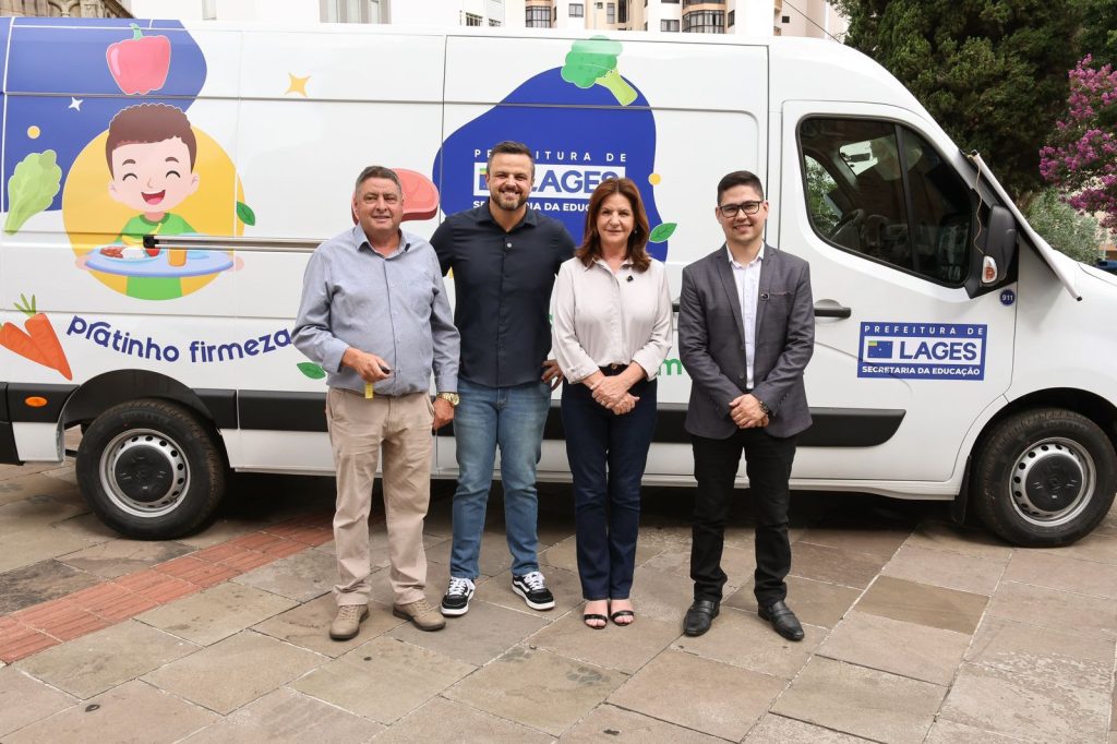 A rede municipal de ensino de Lages recebeu, na manhã desta sexta-feira (6), um reforço na logística da alimentação escolar. O deputado estadual Lucas Neves entregou ao município um furgão que será utilizada no transporte de alimentos destinados às escolas e aos Centros de Educação Infantil (CEIMs). O ato contou com a presença da prefeita Carmen Zanotto, do presidente da Câmara Municipal, Maurício Batalha, dos vereadores Tio Zé, Éder Santos e Gabriel Córdova, além do secretário municipal da Educação, Cristian de Oliveira.