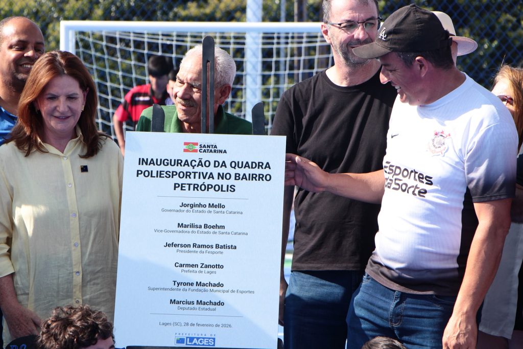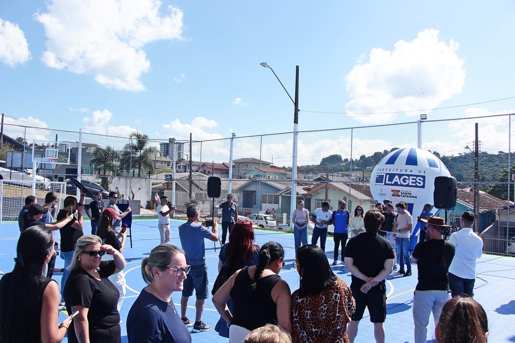 A Prefeitura de Lages inaugurou neste sábado (28 de fevereiro), a reforma da quadra poliesportiva localizada na Rua Camboriú, no bairro Petrópolis. A obra contemplou uma área de 611,52 metros quadrados e recebeu investimento de R$ 339 mil, provenientes de emendas parlamentares do deputado estadual Marcius Machado, por meio de recursos financeiros do Governo do Estado de Santa Catarina.