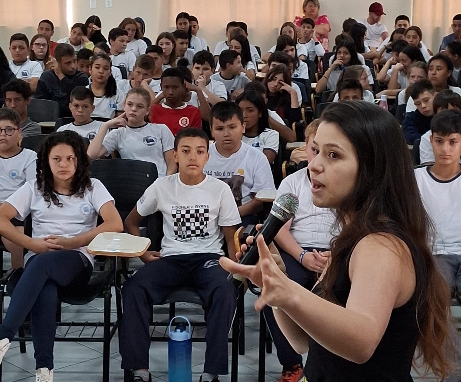 Na sequência, a representante do MPSC desafiou os estudantes a construírem um ambiente baseado na empatia e no respeito às diferenças. “Vamos mudar isso juntos, acolhendo os colegas e entendendo que cada um tem o seu valor e merece ser respeitado? Assim, todos se sentirão melhor e poderão focar nos estudos sem se preocupar com situações constrangedoras, que abalam os sentimentos e as emoções”, concluiu.