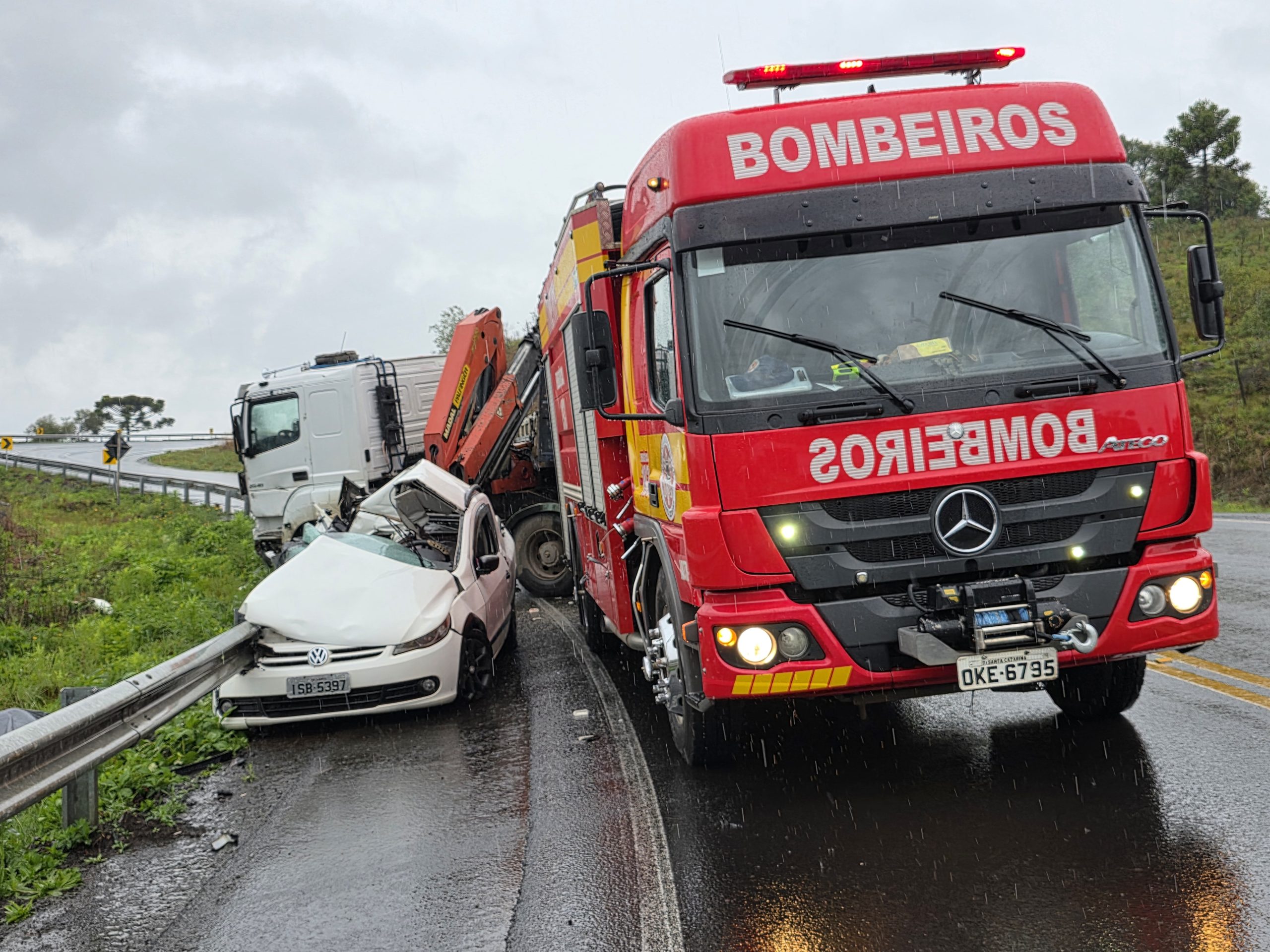 Colisão frontal entre carro e caminhão deixa dois mortos na BR-282 em Bocaina do Sul
