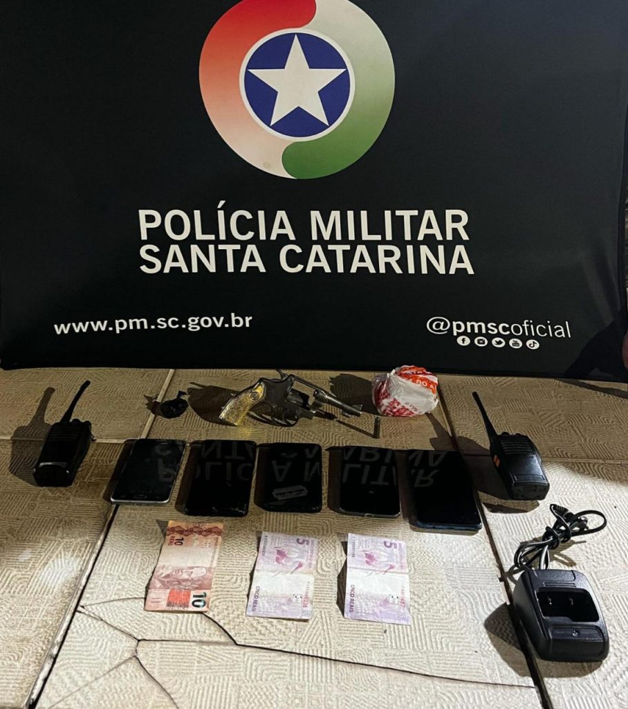 A operação teve início após solicitação do COPOM para averiguar uma denúncia. Segundo a vítima, que já havia registrado um boletim de ocorrência por furto em sua residência dias antes, indivíduos supostamente ligados a uma facção criminosa passaram a ameaçá-la, afirmando pertencer ao Primeiro Grupo Catarinense (PGC). Diante da gravidade dos relatos, a equipe ROCAM realizou incursão no beco da Rua Eloi Chaves, onde abordaram o suspeito um homem de 19 anos, em frente à sua residência. Após autorização do próprio abordado, os policiais realizaram buscas no imóvel e encontraram: um revólver calibre .32, 127 gramas de substância análoga à maconha, 12 gramas de substância análoga à crack, uma munição, cinco aparelhos celulares, dois rádios comunicadores e R$20,00 em espécie. Questionado, o suspeito afirmou que vendia drogas para sustentar-se. Diante dos fatos, o homem de 19 anos, foi conduzido à Central de Plantão Policial (CPP), juntamente com todo o material apreendido, onde a ocorrência foi apresentada ao delegado de plantão para os procedimentos legais cabíveis.