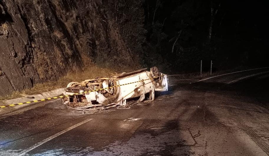 Uma camionete S10 , conduzido por um tchô de 41 anos, trafegava pela SC-110 em Urubici no início da madrugada deste sábado(17), quando o motora perdeu o controle da boleia em uma curva, saiu da pista bateu em um barranco, onde o veiculo ficou com as rodas para cima e após pegou fogo logo em seguida.