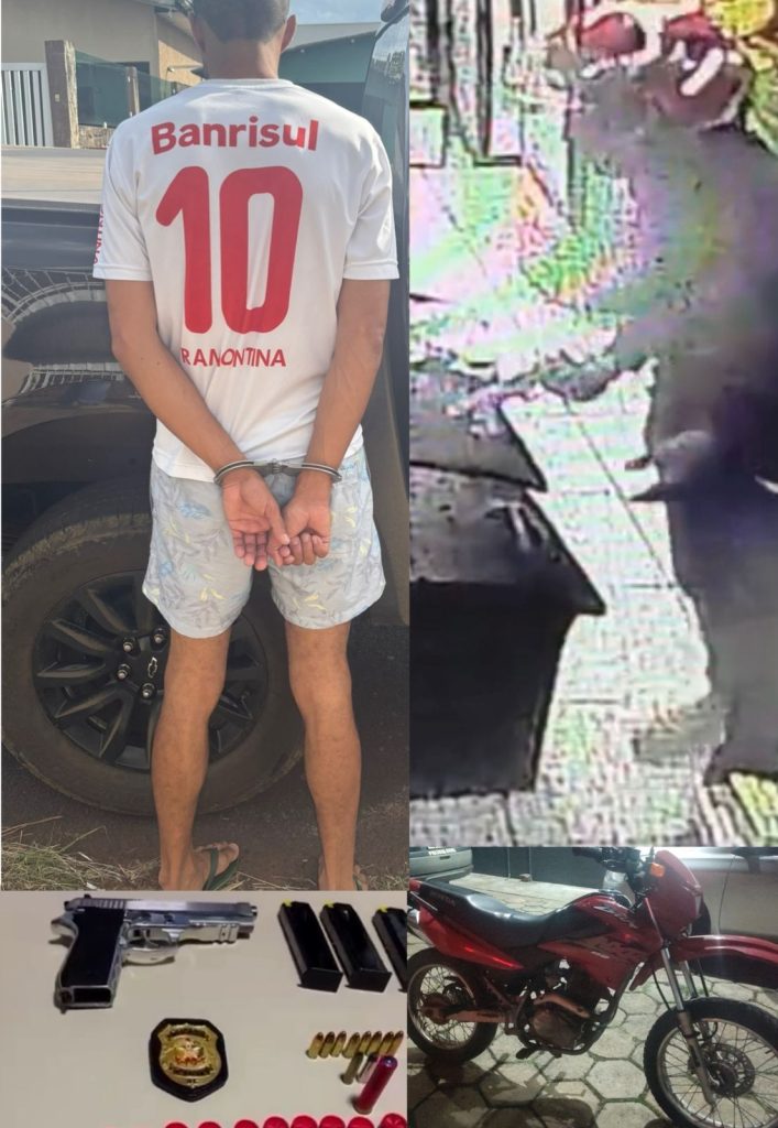 Já o segundo e o terceiro roubo ocorreram no dia 26/03/2025, em um bar, localizado no Centro da cidade e em uma mercearia no Bairro Santo Antônio, respectivamente. O autor também utilizou uma pistola calibre 9mm para ameaçar os atendentes e subtrair os valores em dinheiro dos estabelecimentos.