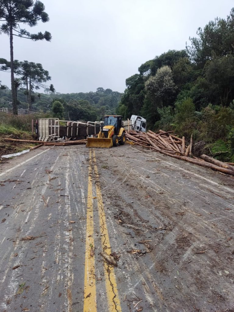 Segundo a Polícia Militar Rodoviária Estadual, no local a guarnição encontrou o caminhão M.BENZ/ACTROS 2651S6X4 acoplado aos semi-reboques SR/NOMA SRFD2E BIFLD e SR/NOMA SRFD2E BIFLD, atravessados e tombados sobre a pista, com a carga de toras espalhadas e obstruindo totalmente o fluxo de veículos. O condutor de 40 anos, recebeu atendimento do Samu e foi encaminhado ao Hospital Nossa Senhora dos Prazeres.