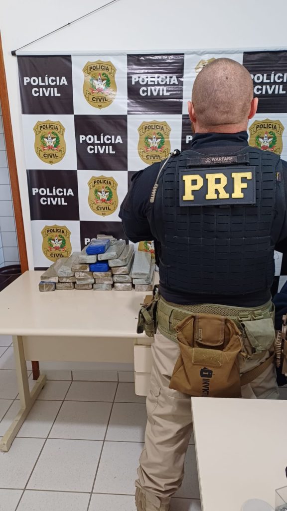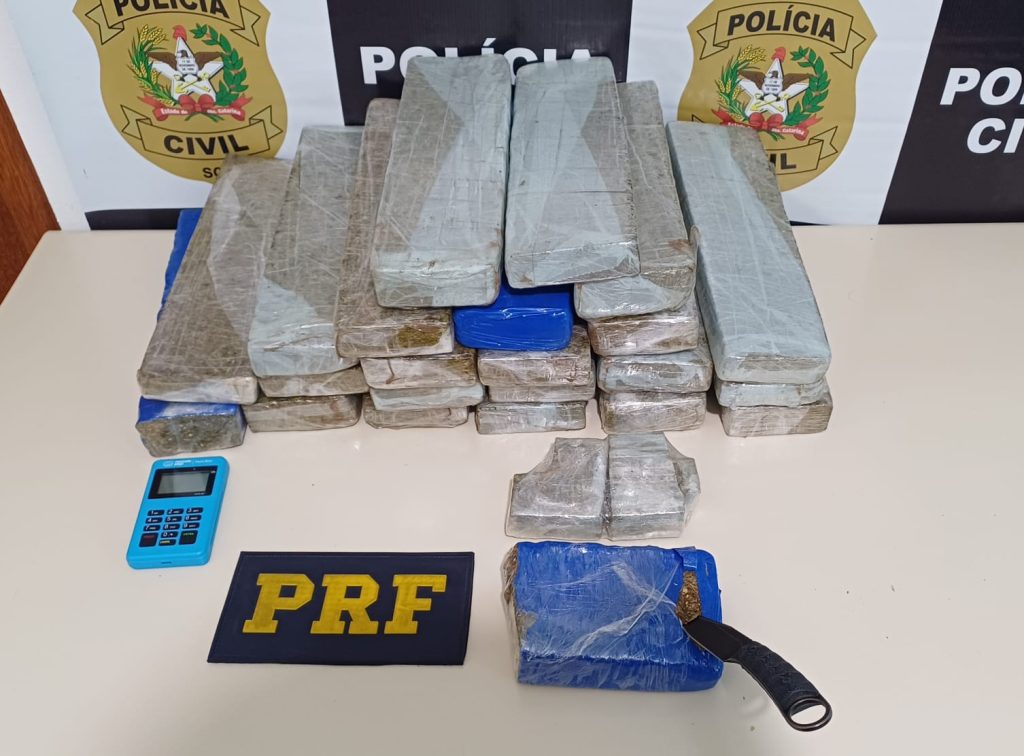O veículo era conduzido por E.M, e tinha uma menor como passageira. Quando o condutor abriu a porta, foi identificado odor semelhante a maconha. Foi questionado ao condutor se possuía algum ilícito no veículo, e o mesmo informou estar transportando cerca de 20 Kg de maconha no banco traseiro do veículo. Durante busca veicular foi confirmado o ilícito, coberto por um cobertor. Diante dos fatos foi emitida voz de prisão para os criminosos pelo crime de *Tráfico de Drogas e Corrupção de Menores, sendo estes, os entorpecentes e o veículo encaminhados para a Polícia Civil de Bom Retiro/SC para os procedimentos cabíveis. A maconha saiu de Palhoça, e seu destino era Lages.