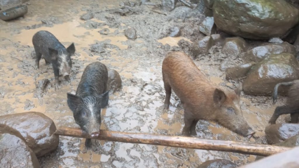 Durante ação de fiscalização, foi constatada a criação irregular de 15 javalis e animais com diferentes graus de cruzamento com o porco doméstico, conhecidos como javaporcos, sem a devida licença ou autorização do órgão ambiental competente.
